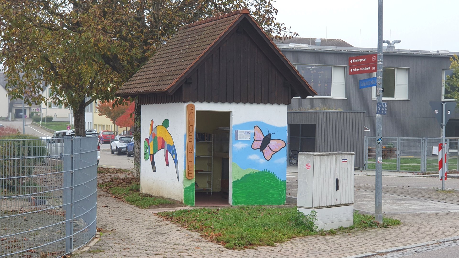 Die Bücherwaage löst die lange gut genutzte aber in die Jahre gekommene Baumbibliothek aus dem Jahre 2011 am Dorfbachplatz ab, die marode geworden ist. Sie wird im Frühjahr zu einem Insektenhotel umgestaltet werden unter der Anleitung von Willi Bühler.