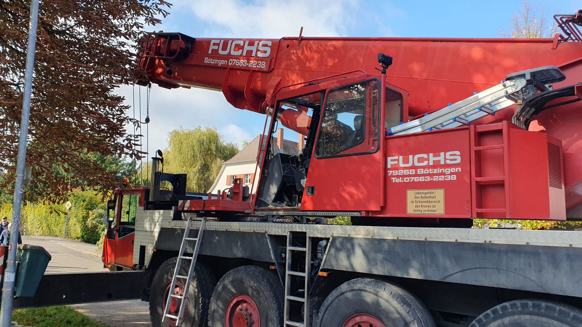 Der Fuchse-Gustl aus Bötzingen hat es am 17. Juli mit dem Schwerlastkran in Gottenheim mal wieder gerichtet: