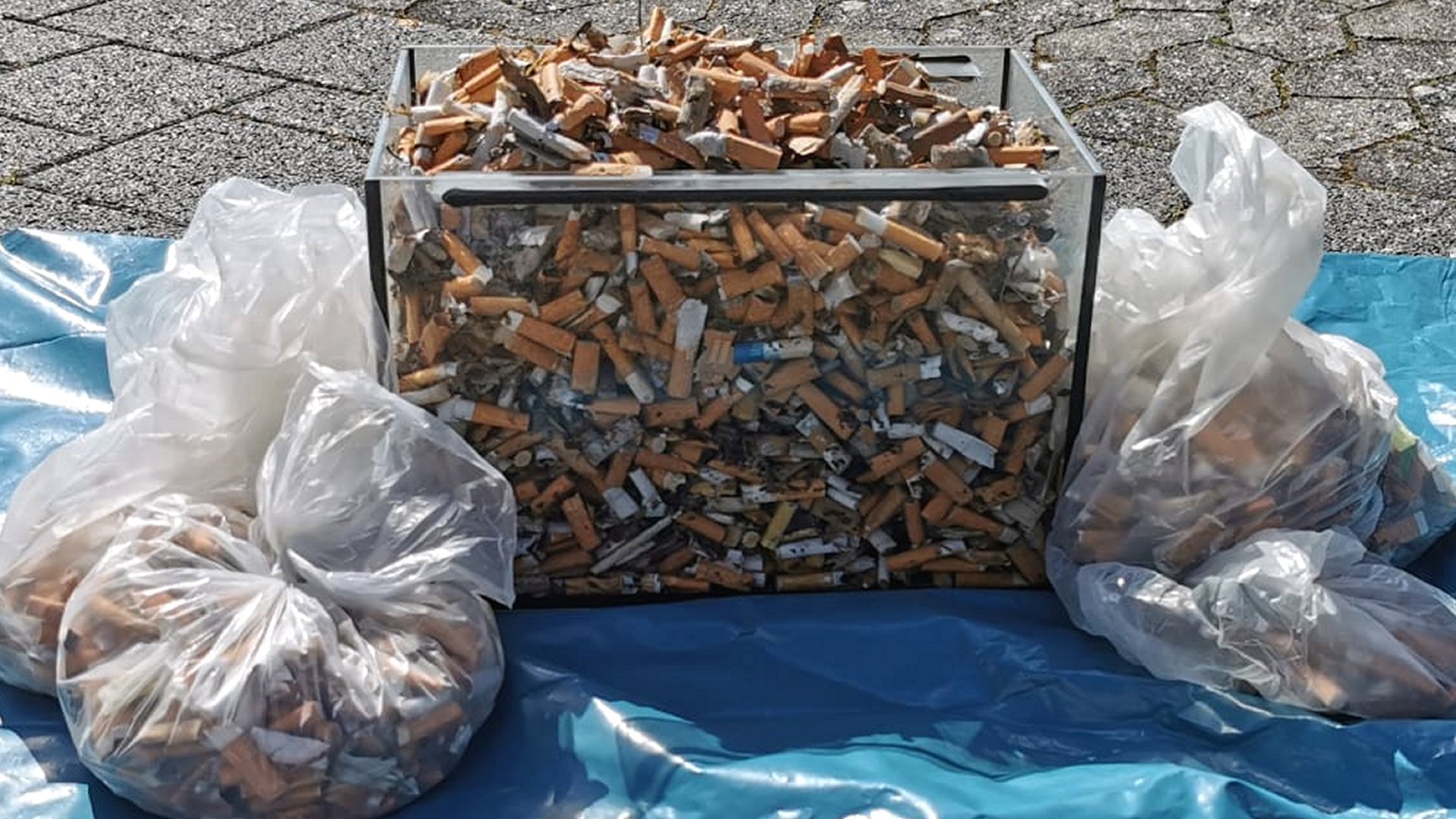 Dass der Schwerpunkt richtig gewählt war, zeigte die Ausbeute kurz vor Mittag. „Etwa 1,5 Kilo Zigarettenkippen wurden eingesammelt. Das entspricht runden 7.500 Zigaretten“, berichtete der Bürgermeister den Helferinnen und Helfern.