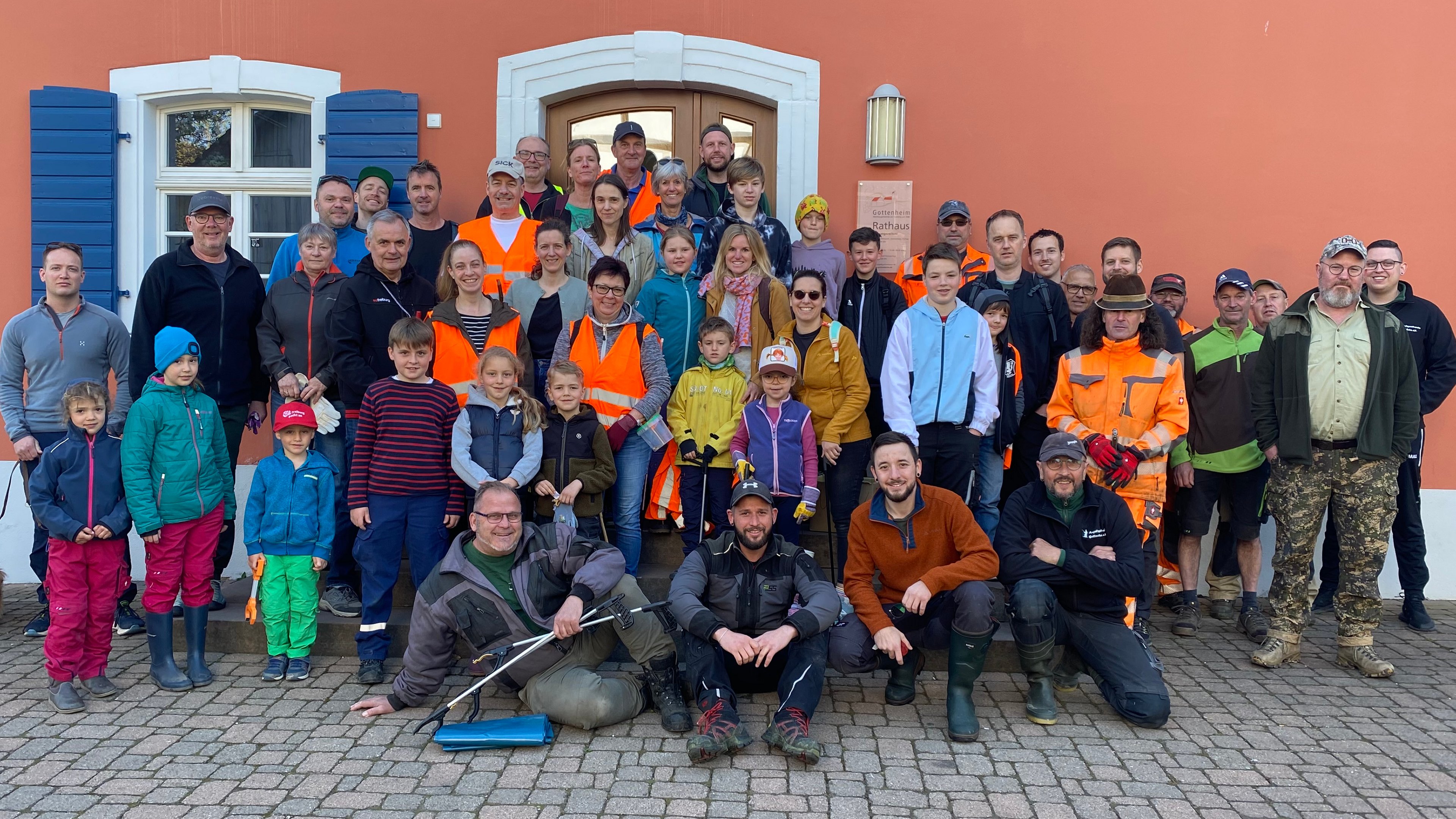 Frauen, Männer, Kinder und der Bürgermeister sammelten am Samstag, 5. April, im Dorf Müll und Zigarettenkippen. Mit dabei waren Mitglieder des Angelsportvereins und der Klimaschutzgruppe.