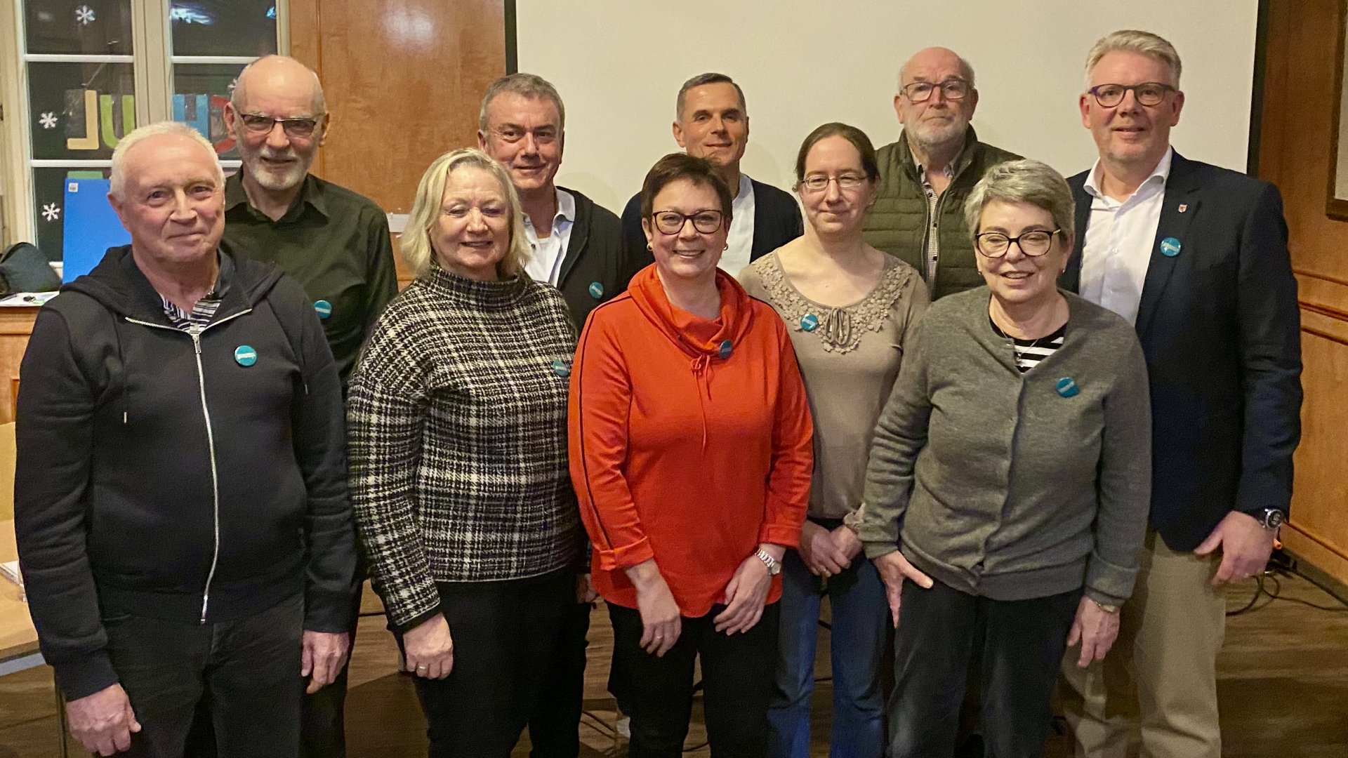 Kassenprüfer Lothar Zängerle, Schatzmeister Michael Himmelsbach, Martina Strittmatter (Beisitzerin), Anton Schlatter (1. Vorsitzender), Barbara Hartenbach (Beisitzerin), Timo Schondelmaier (2. Vorsitzender), Schriftführerin Ruth Margret Kraus, Kassenprüfer Herbert Hinrichs, Birgit Wiloth-Sacherer (Beisitzerin), Christian Riesterer, der die Gemeinde vertritt.