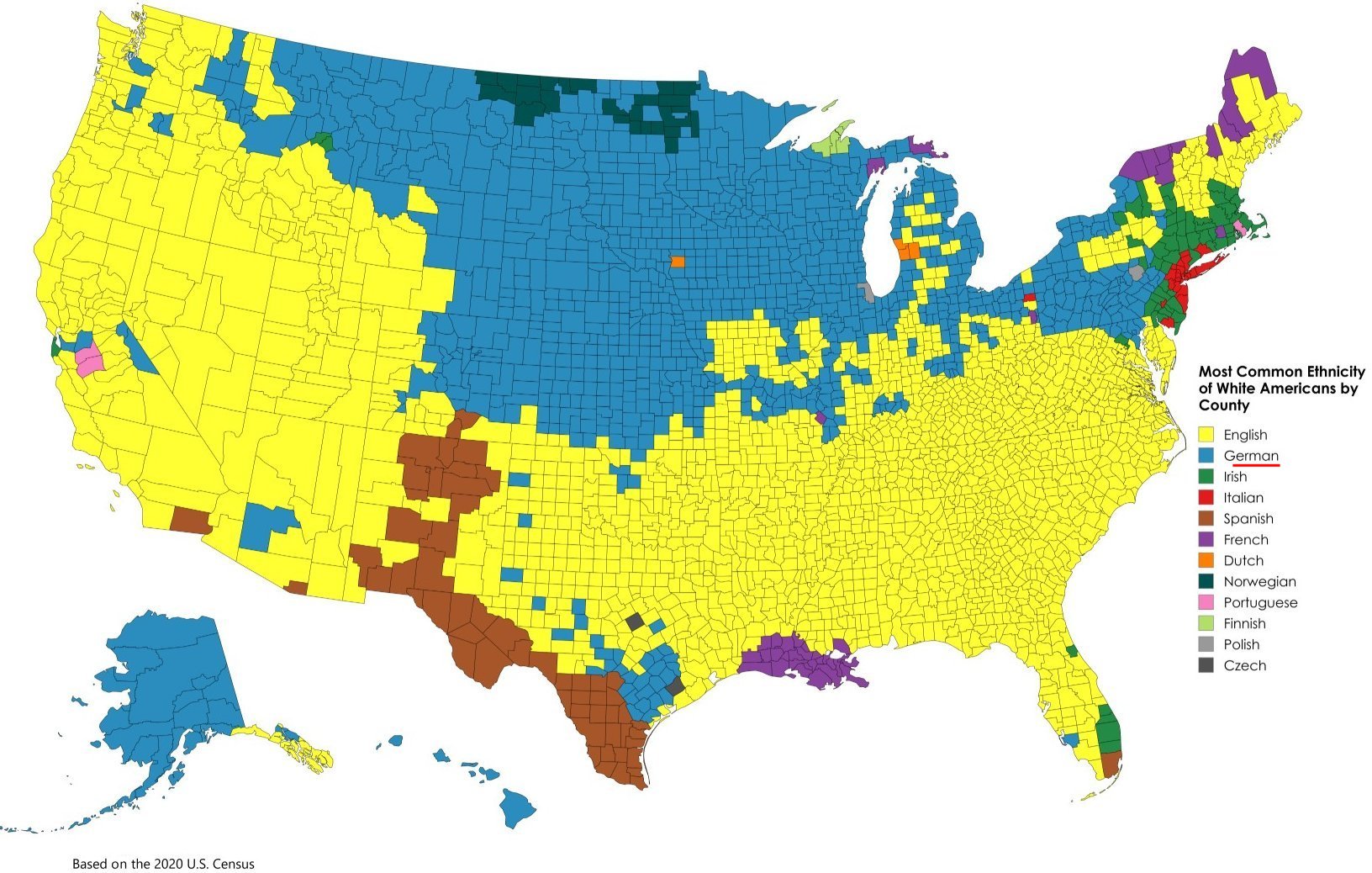 USA-Karte: Weiße amerikanische Abstammung