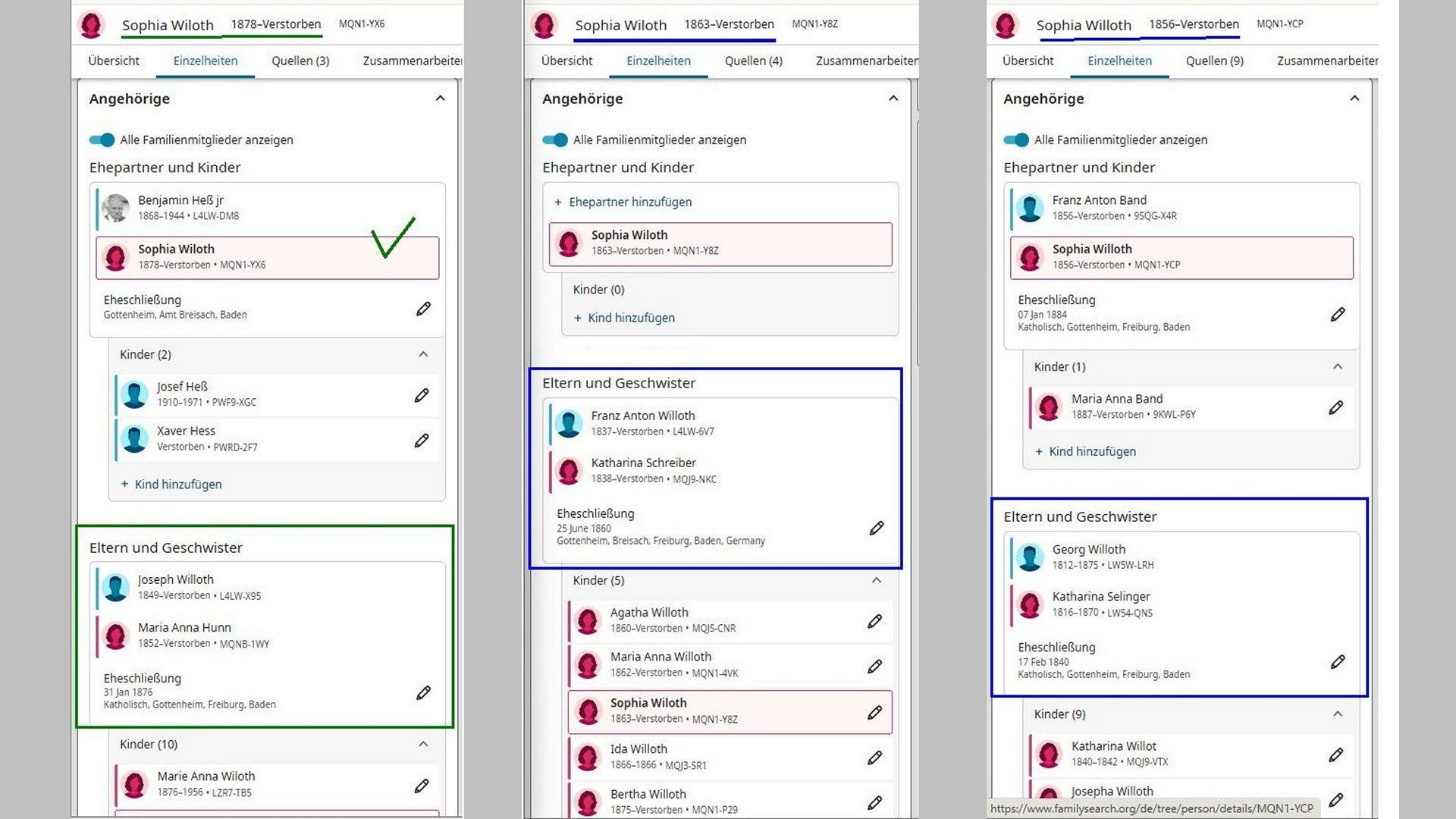 In FS fehlen für Gottenheim aber die Daten nach 1900 und oft die Verknüpfungen zwischen den Personen, da Taufe, Heirat und Tod separat erfasst wurden.