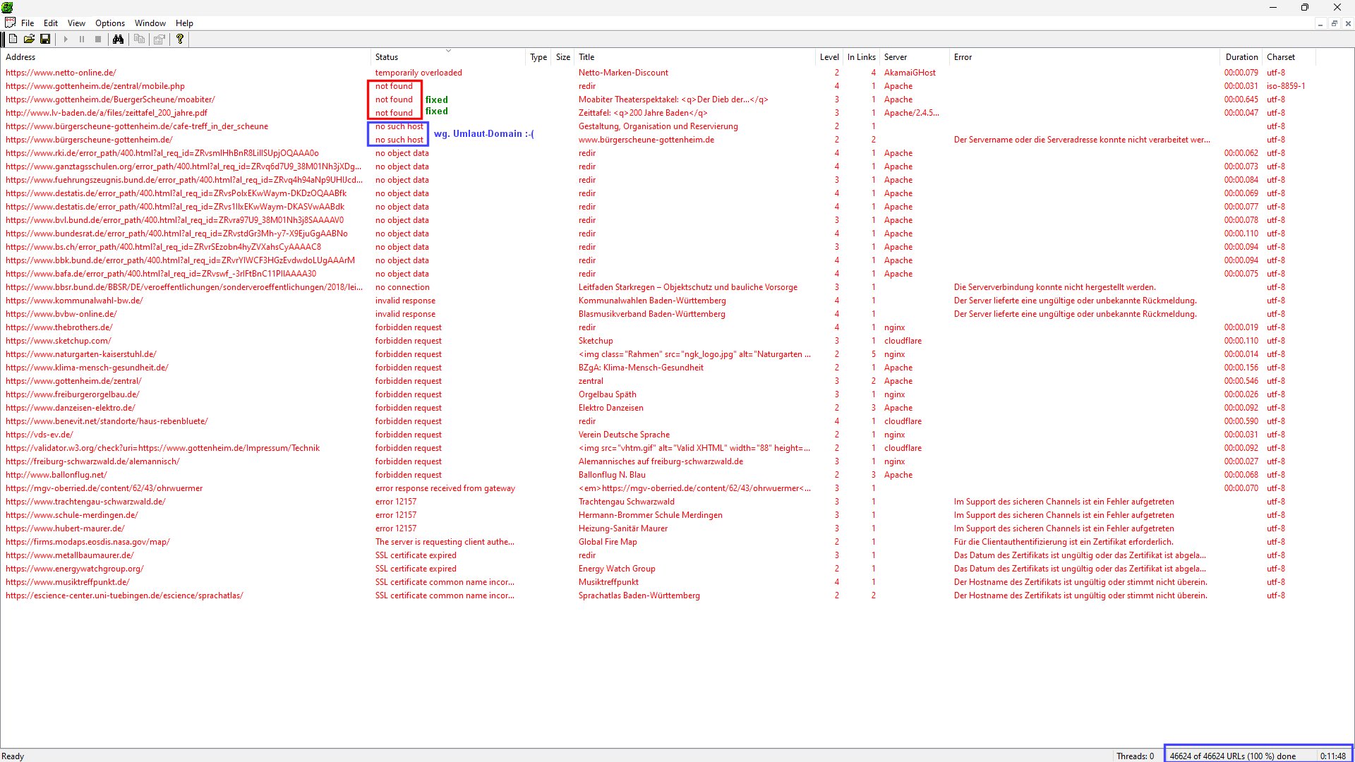 - Links: Überwachung aller Hyperlinks (47.000 in 11 Min)