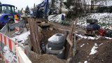 Die Firma Baldinger arbeitet nun wieder intensiver am Verlegen und Anschließen der Abwasserrohre ...