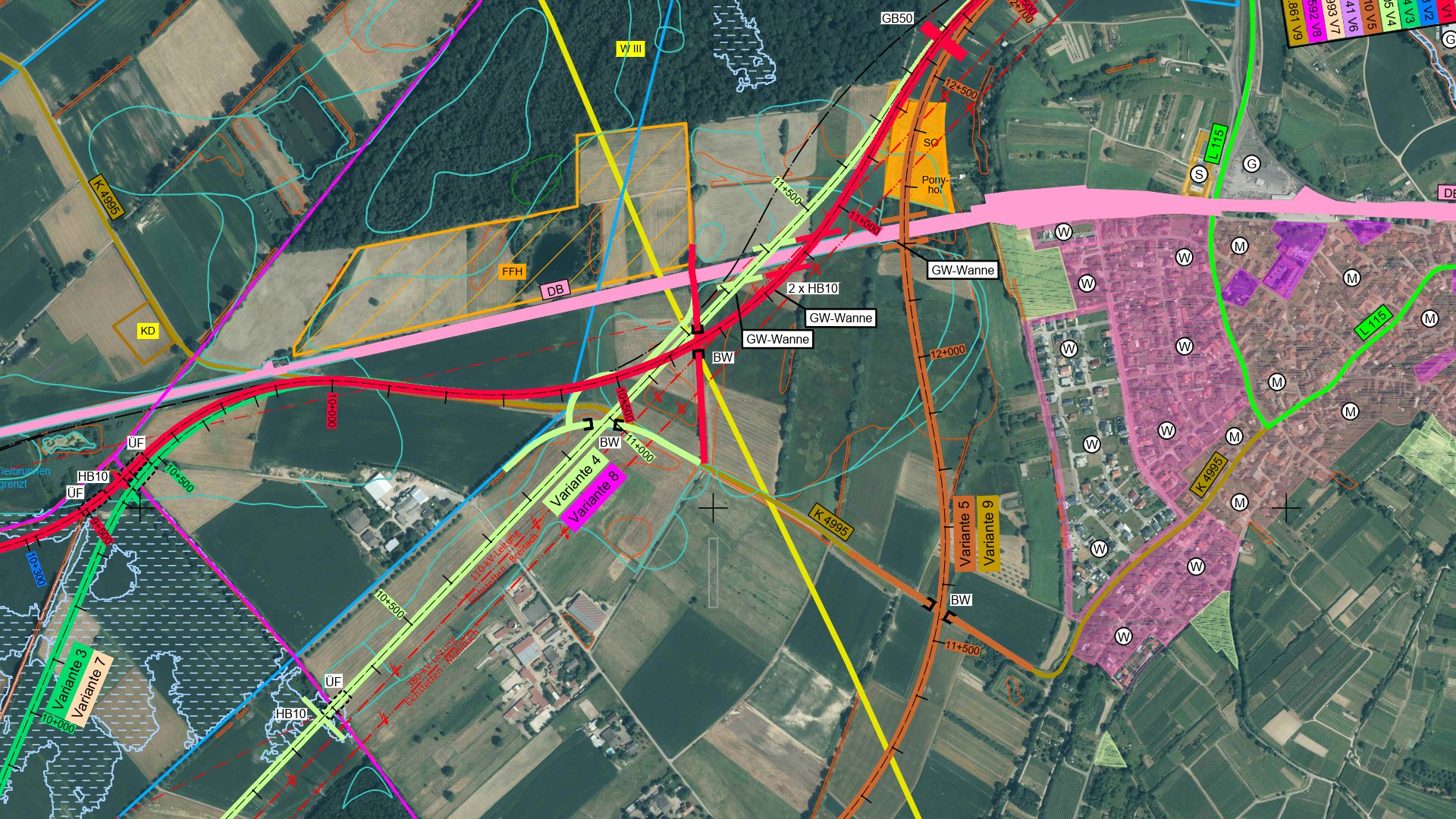 Zusammenstellung: Kurt Hartenbach; ©Luftbilder: Google; ©Planungsalternativen: Regierungspräsidium