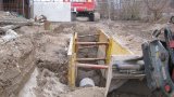 Fotoserie vom Einbau des Riesenrohrs u.a. für das Abwasser quer unter den Bahngleisen.