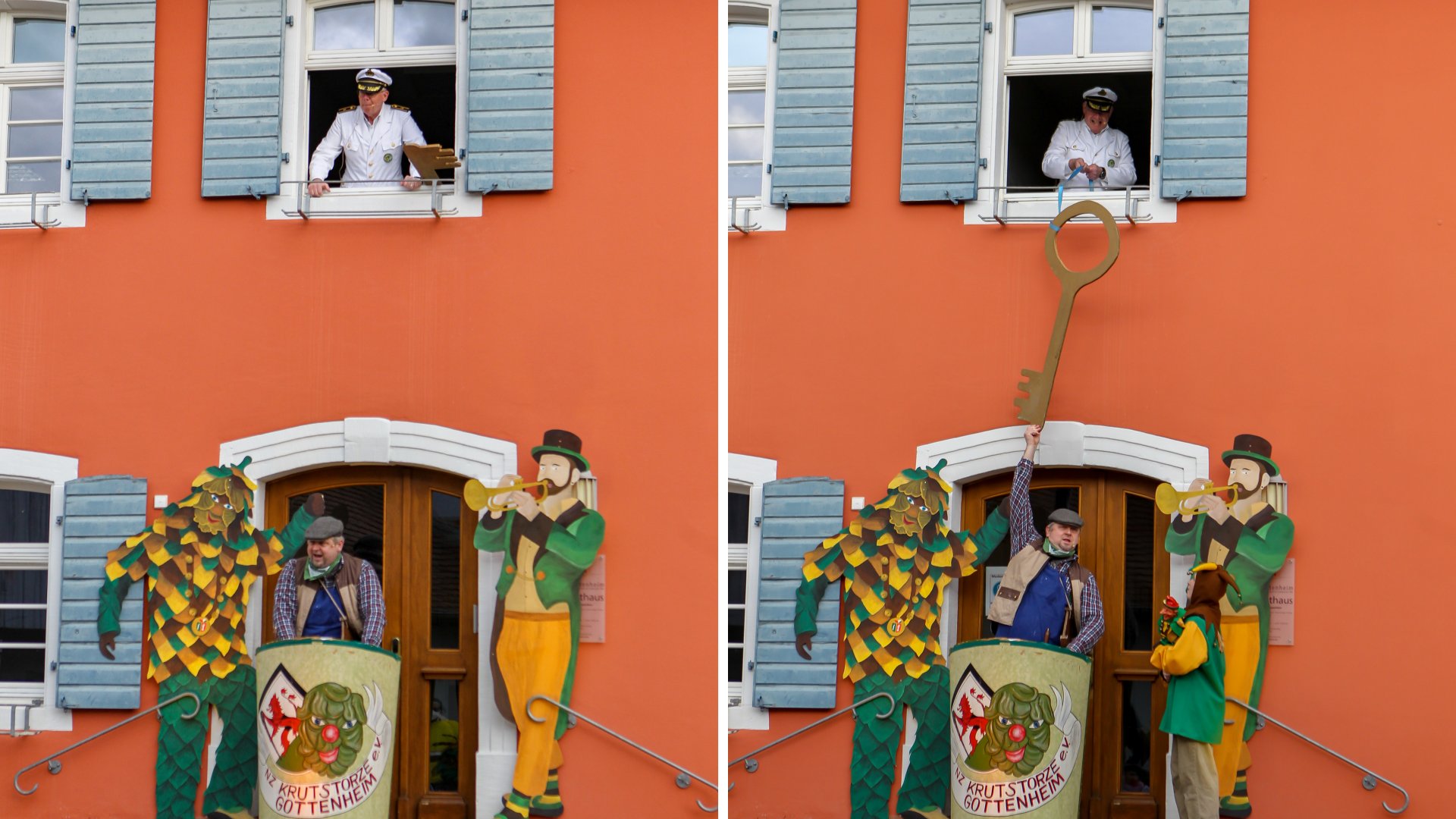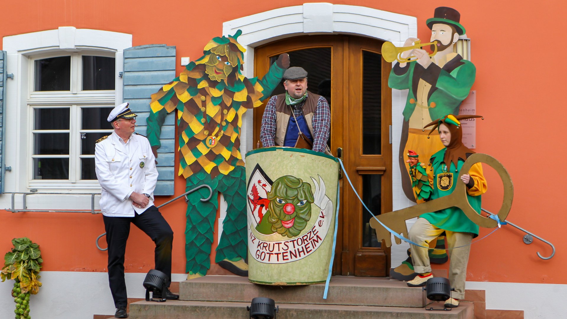 Die Rathausstürmung durch den Krutschnieder und eine Abordnung der Zunft und das Aufstellen des Narrenbaums wurde gefilmt und fotografisch festgehalten – alle Gottenheimer Bürgerinnen und Bürger können den Film und die schönsten Fotos ab sofort unter www.gottenheim.de und auf der Facebook-Seite der Narrenzunft anschauen und sich so auf coronakonforme Fasnet-Tage einstimmen.
