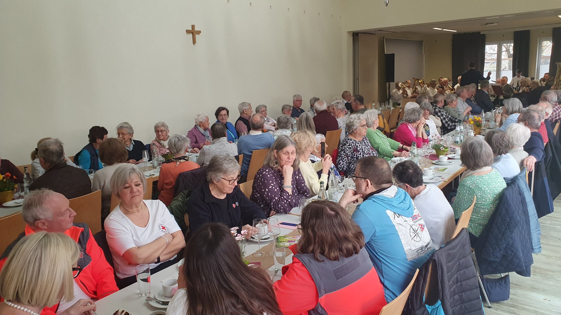 Natürlich stand auch die Geselligkeit, der Austausch und der Genuss im Mittelpunkt des Nachmittags. Die Tische waren mit Frühlingsblumen dekoriert, ein Team des DRK-Ortsvereins sorgte für die Sicherheit.