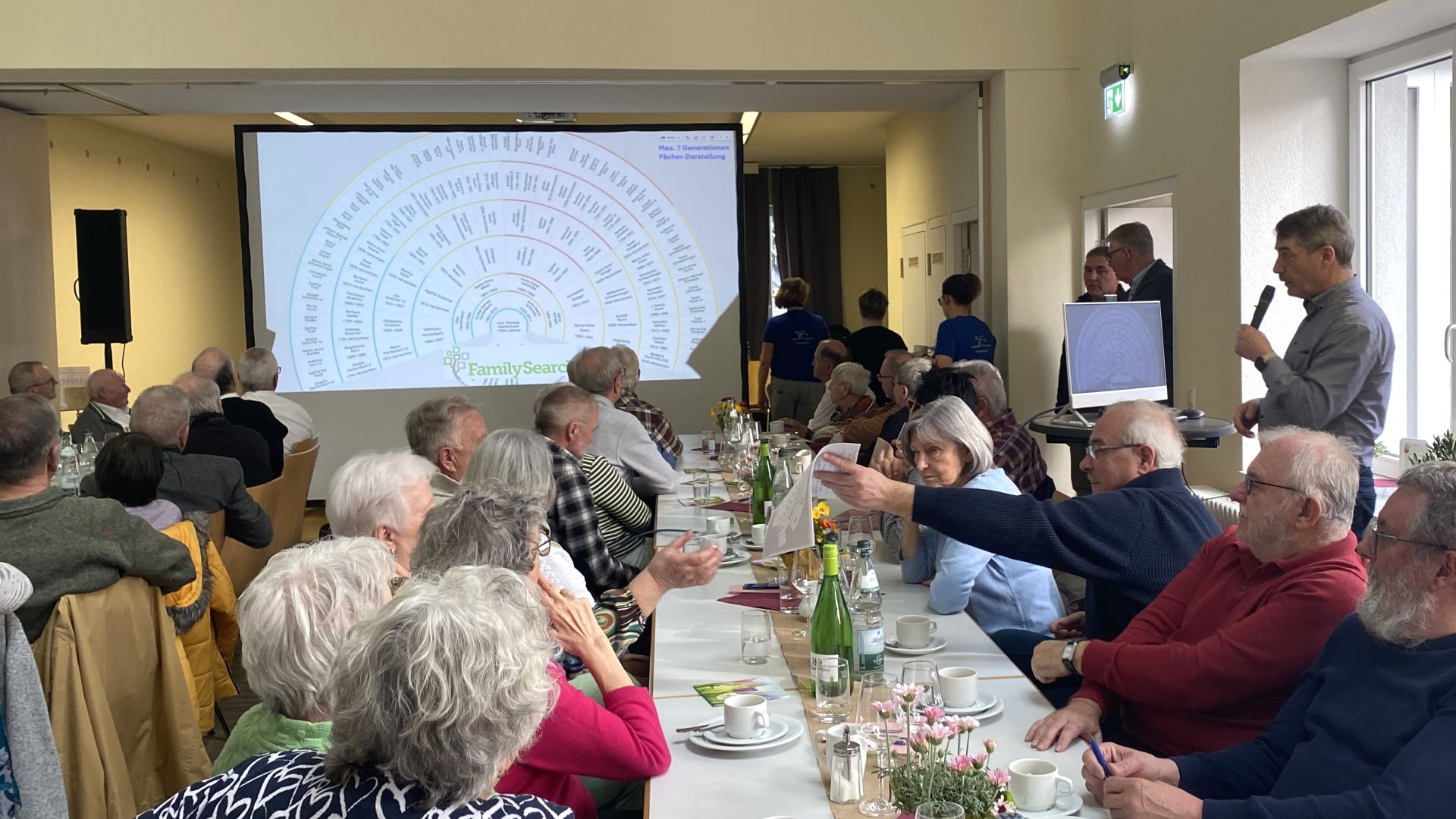 Interessiert folgten die Gäste den Ausführungen über seine umfangreichen Recherchen, und staunten über die Daten, die Hartenbach aus Kirchenbüchern und anderen Quellen zusammengetragen hat. In monatelanger Arbeit habe er die Daten eingepflegt, so Kurt Hartenbach.