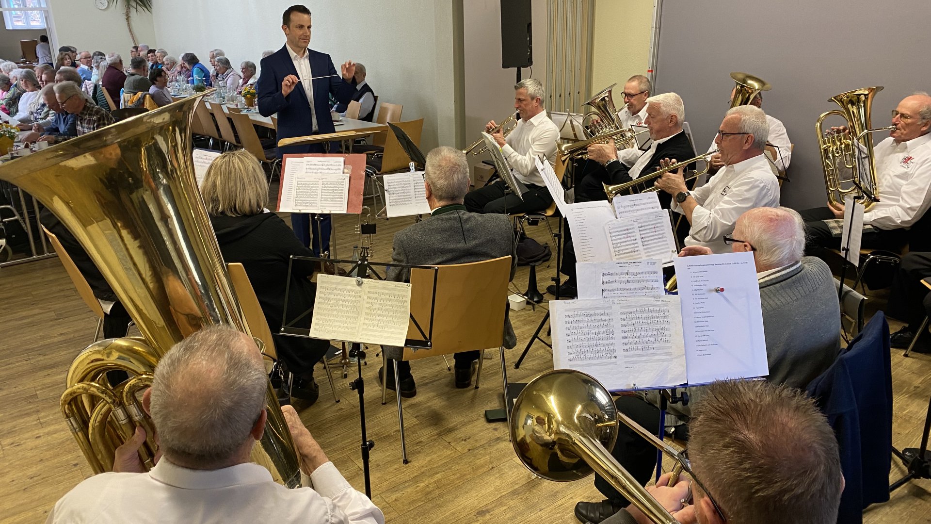 Die Spielfreude war ihnen anzusehen: Die Musikerinnen und Musiker der Traditionskapelle eröffneten den Unterhaltungsnachmittag im Gemeindehaus St. Stephan am Samstag mit frischen Klängen.