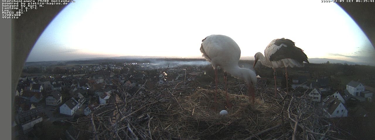 12. März: Yukiko meldet 1. Storchenei im Nest, es geht los...