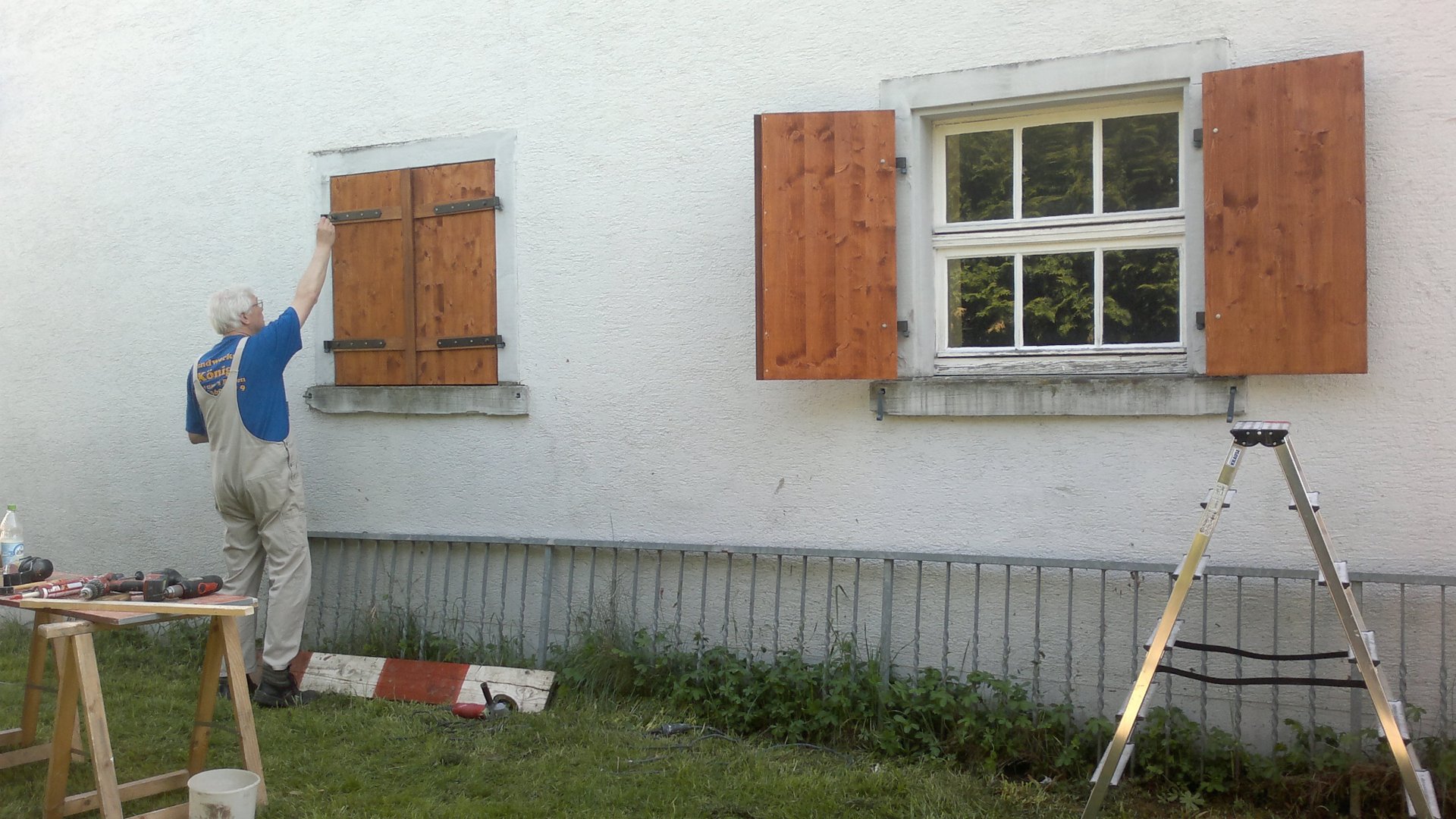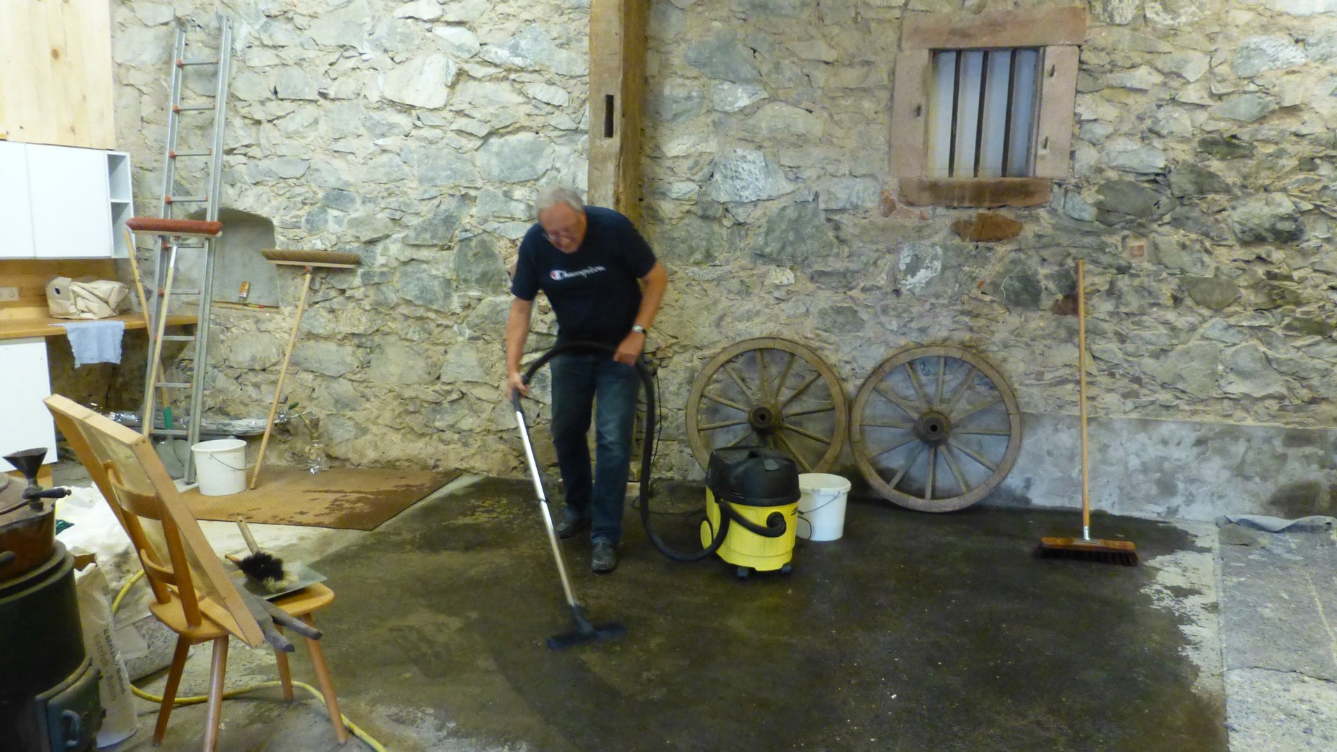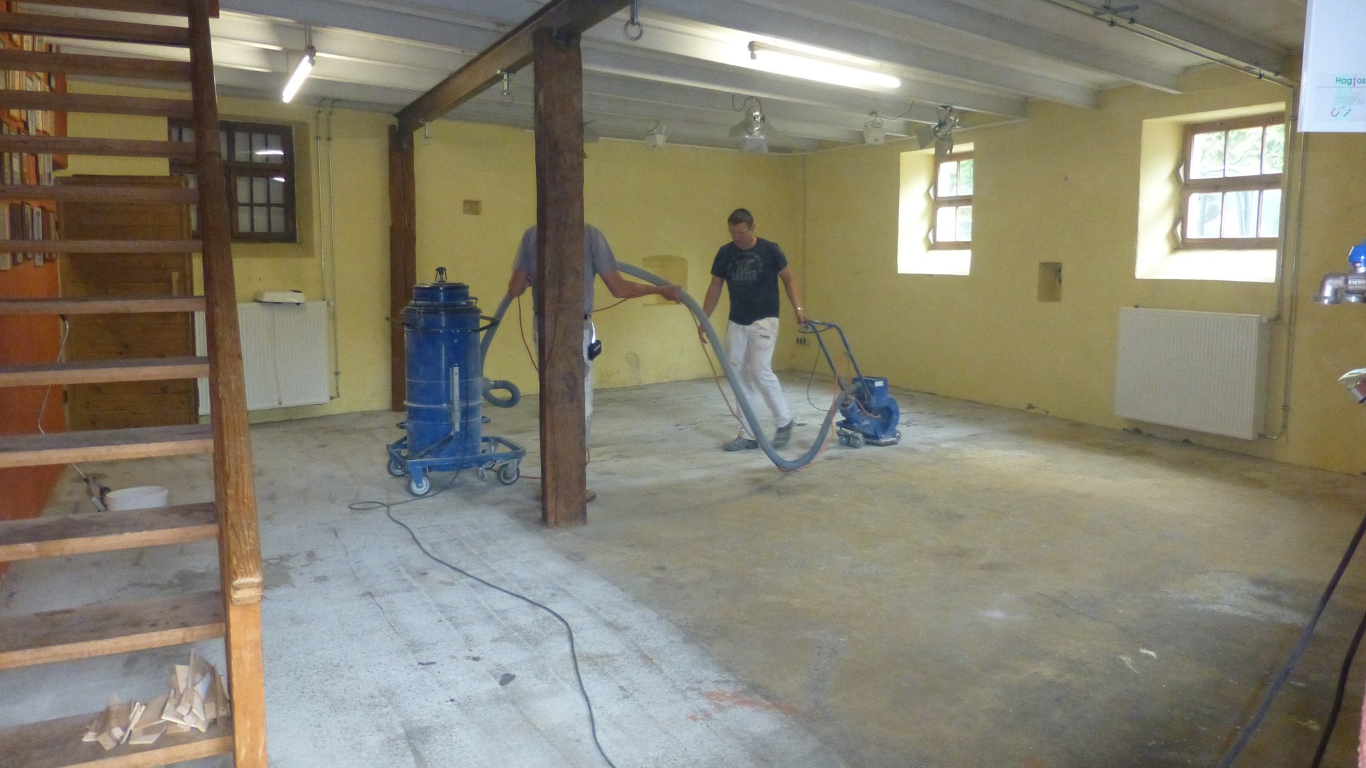 Die Wände des ehemaligen Farrenstalls wurden gründlich abgeklopft und gesäubert, Löcher im Mauerwerk verputzt sowie Türen und Fenster sorgfältig abgeschliffen.