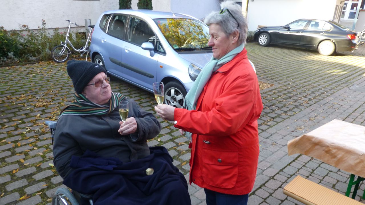 In zehn Jahren haben die Stammgäste des Silvesterumtrunks im Gottenheimer Rathaushof und die Mitglieder der BE-Gruppe BürgerScheune schon so manche Witterung erlebt: von winterlich kalt, über Schneetreiben, Nieselregen, Nebel und stürmische Winde war schon alles dabei. Alle Gäste und auch die BürgerScheunler waren sich aber einig: So einen frühlingshaft warmen Silvesterumtrunk wie am 31. Dezember 2017 hat es bisher noch nie gegeben. In leichter Jacke und ohne Schal waren die meisten Gäste am Sonntagnachmittag in den Rathaushof gekommen. Die Mehrzahl der Gäste war in Sektlaune. Der feine Glühwein vom Badischen Winzerkeller Breisach und der von der BE-Gruppe hausgemachte Punsch wurde dieses Jahr eher weniger nachgefragt.