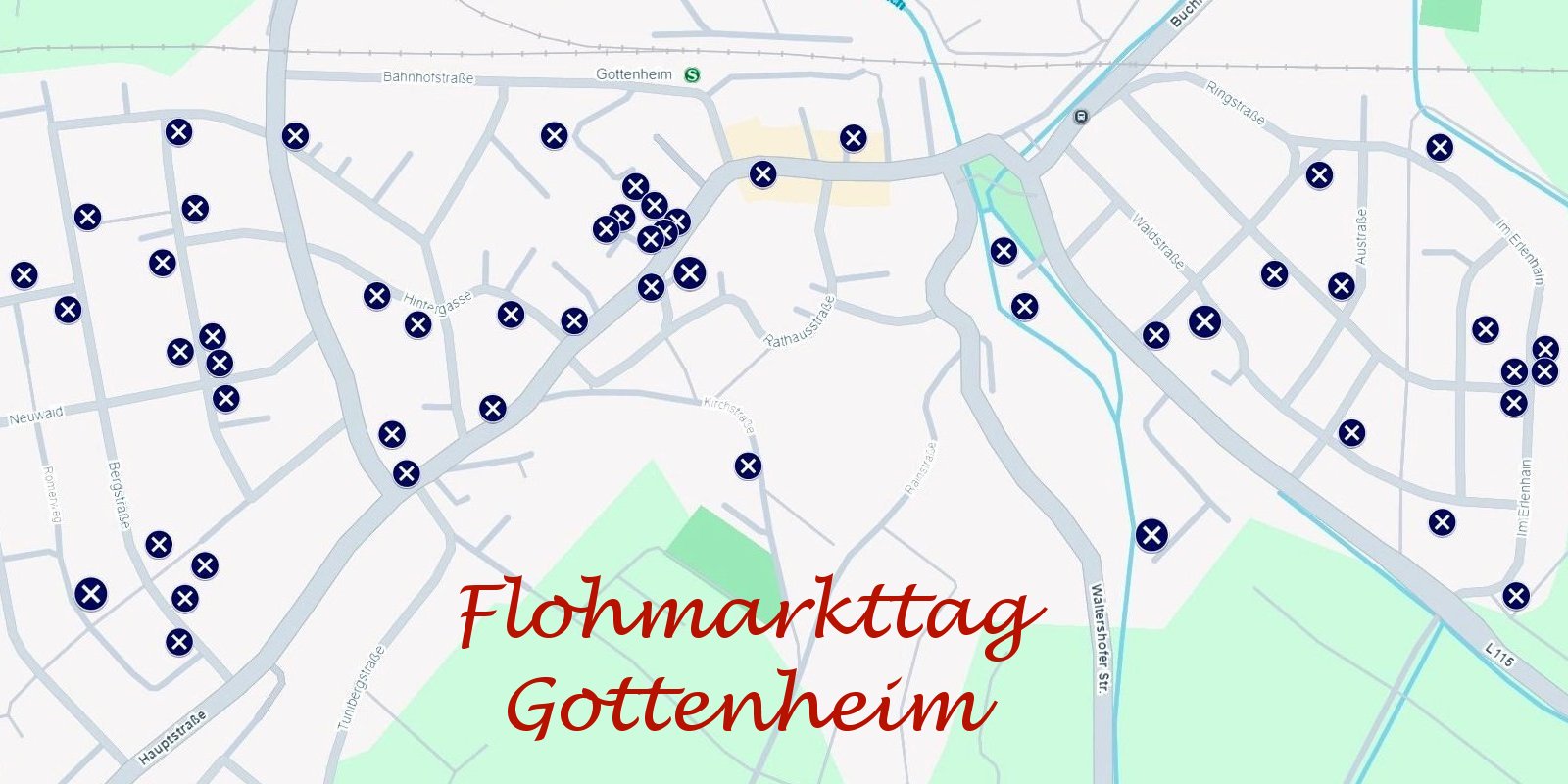 Flohmarkt-Tag-Plakat mit QR-Code zur nachfolgenden Google-Maps Karte: