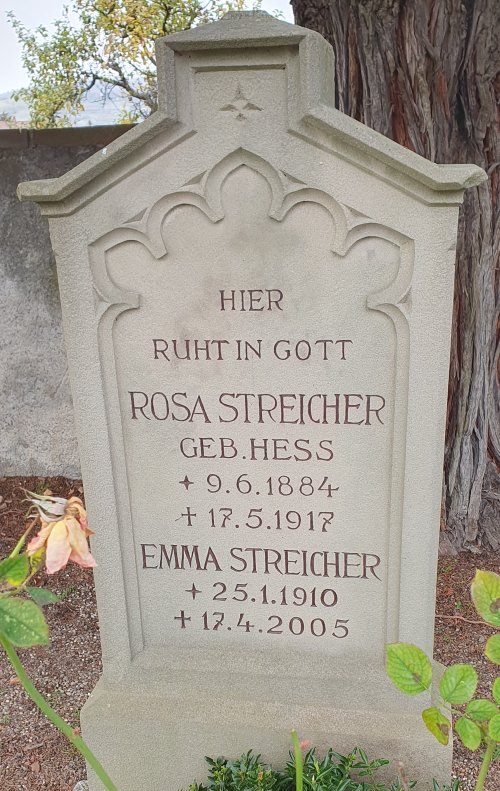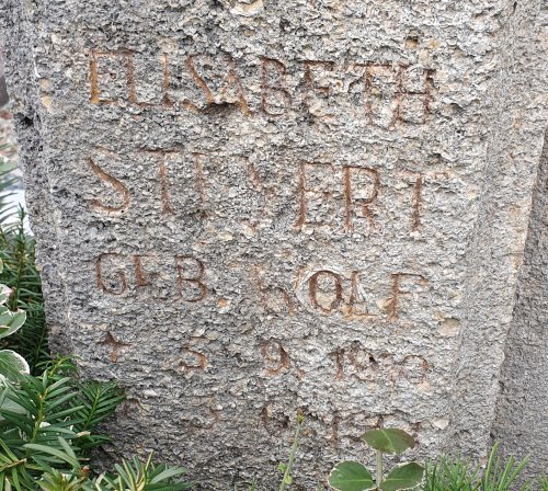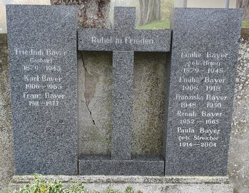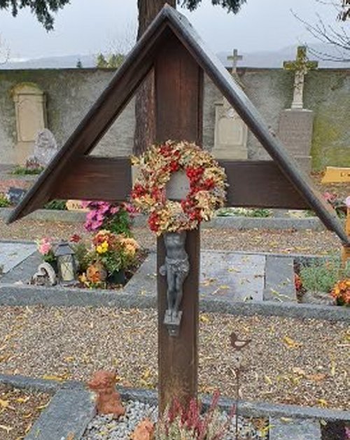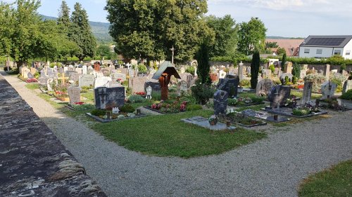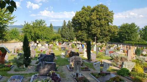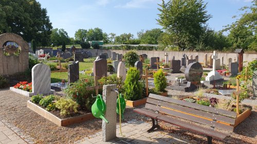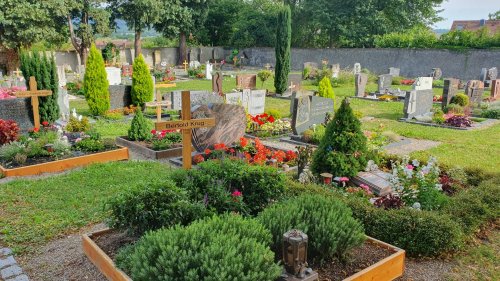 20 rot umrandete Grabsteine 2018 aufgenommen, waren 2025 entfernt bzw. das Grab war eingeebnet.