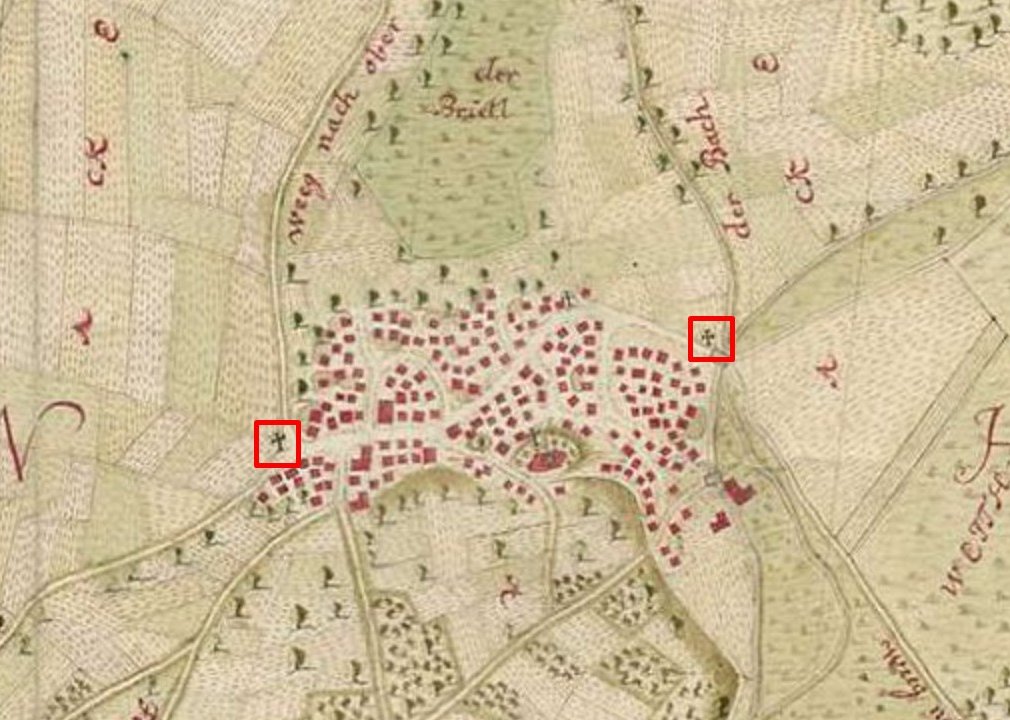 Zwei große Wegkreuze sind in Gottenheim bereits auf der topograph.