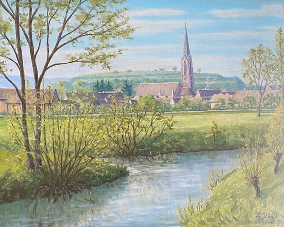 Der Heimatmaler Helmut Vögtlin aus Bahlingen hat im 20. Jahrhundert viele wunderbare Gemälde vom Breisgau und so auch von Gottenheim geschaffen.