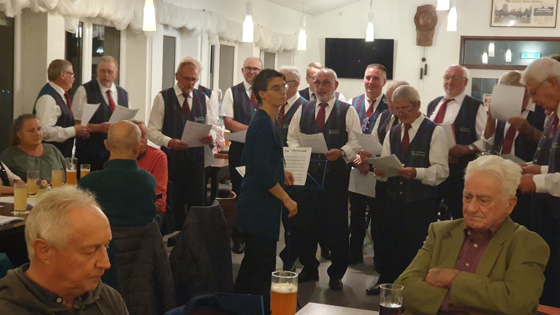 Hess, ein Urgestein des Liederkranzes, wurde zum Ehrenvorstand ernannt und erhielt eine Ehrenurkunde und einen gestickten Tischwimpel als Kopie der MGV-Vereinsfahne für sein privates Vereinswohnzimmer