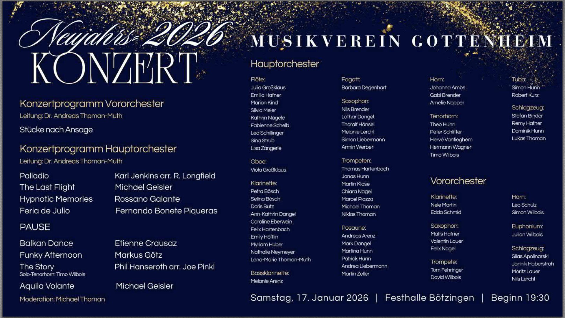 - Sa. 17. Januar 2026 Festhalle Bötzingen. Leitung: Andreas Thoman. Moderation: Michael Thoman