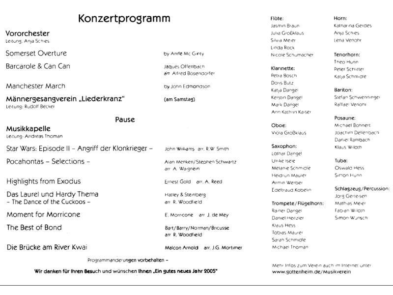 Am 7. und 8. Januar 2005 war wieder das erste Highlight des Jahres: das Konzert des Musikvereins Gottenheim !