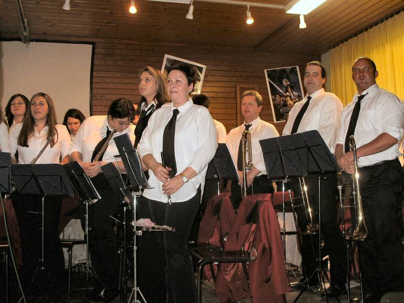 Anfangs zeigte das Vororchester unter Leitung von Anja Schies sein Können, dann folgten die Aktiven unter Leitung von Stardirigent Andy Thoman. Die Filmsequenzen wurden von Ulrike Isele anschaulich erläutert.
