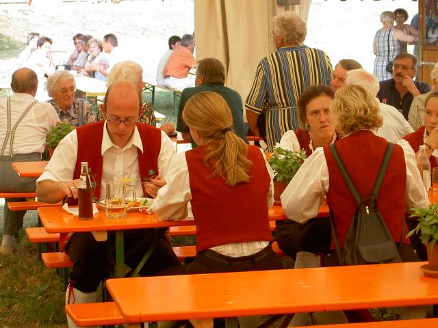 Aber bevor musiziert wird, müssen Festzelt, Podium, Theke, Küchenzeile, Tische und Bänke u.v.a.m. aufgebaut, Getränke organisiert, Essen vorbereitet und festlich ausgeschmückt werden: