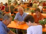 Festzelt für ausgelassene Stimmung auf den Bänken.