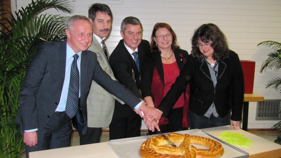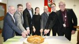 Zum Schluss schnitt BM Kieber die obligatorische Neujahrsbrezel an und die Anwesenden unterhielten sich angeregt. Zeitungsbericht.