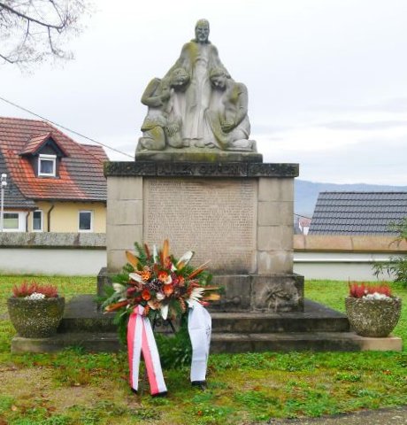 Zur Gedenkfeier vor dem Kriegerdenkmal auf dem Vorplatz der St. Stephans-Kirche fanden sich am Sonntag, 18. November, dem Volkstrauertag, Bürgermeister Christian Riesterer, Gemeinderäte sowie Bürgerinnen und Bürger ein.