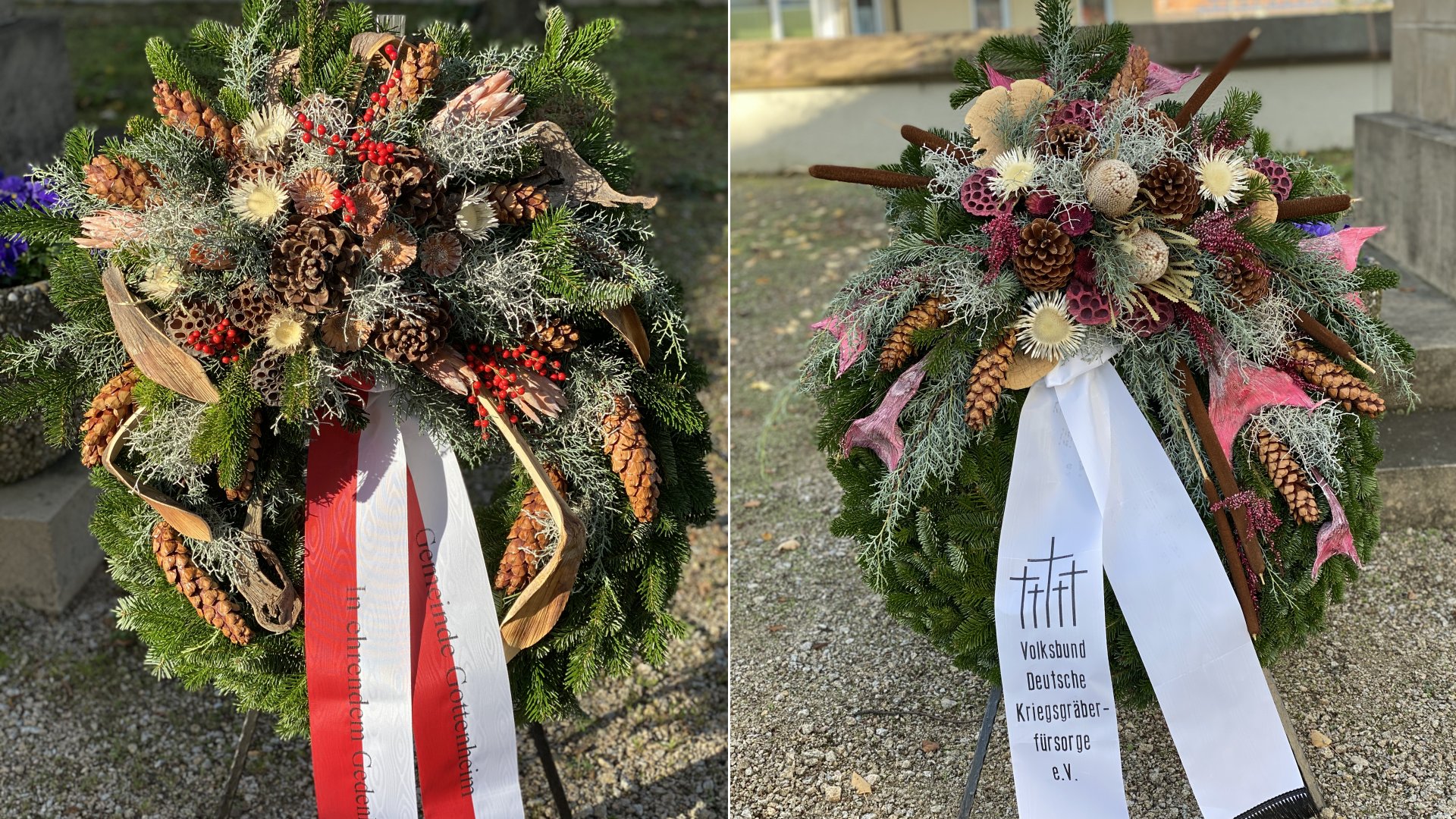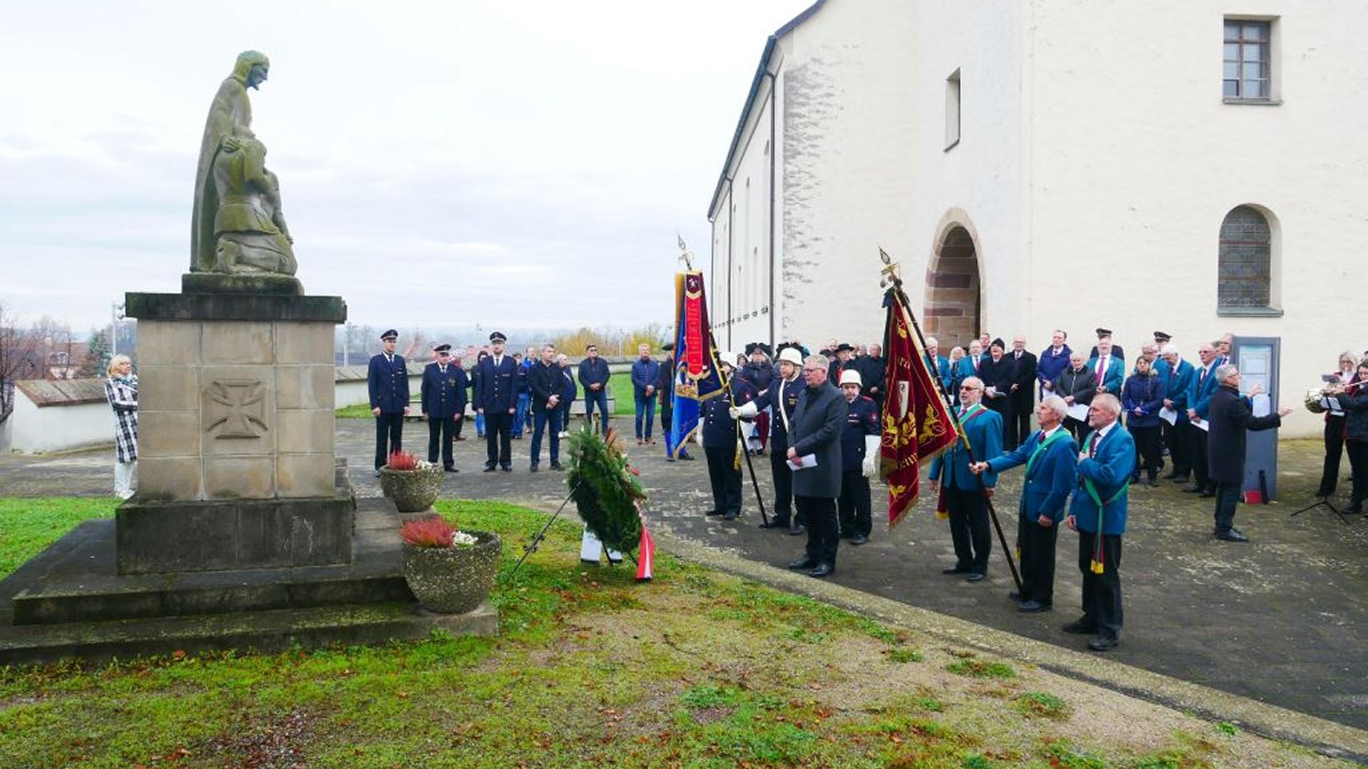 Bürgermeister Riesterer legte zwei Kränze vor dem Ehrenmal nieder – einen für die Gemeinde und einen für den Volksbund Deutsche Kriegsgräberfürsorge. Der Bürgermeister erinnerte dabei an die Opfer von Kriegen und Gewalt, die nicht vergessen seien. Die Erinnerung an die schrecklichen Geschehnisse während der Kriege und der Gewaltherrschaft seien auch heute noch Mahnung und verpflichteten dazu, sich für Frieden und Freiheit einzusetzen.