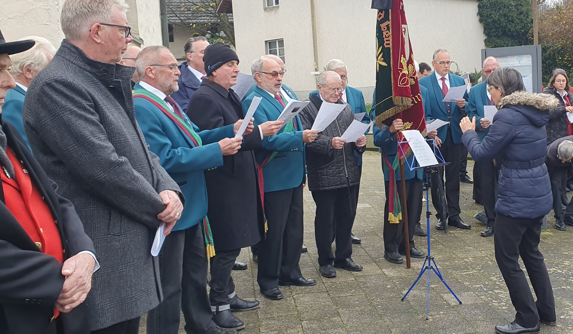 Dabei wird nach nach musikalischer Einleitung durch Musikverein und Gesangverein sowie Ansprache des Bürgermeisters ein Trauerkranz niedergelegt: